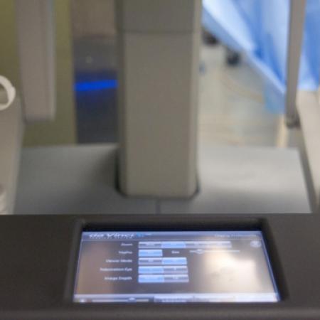 This is picture demonstrates a first-generation robotic control station. The control console of the da Vinci system is ergonomically designed not only allowing increased visualization but also alleviating some of the orthopedic injuries that occur during laparoscopic retraction.